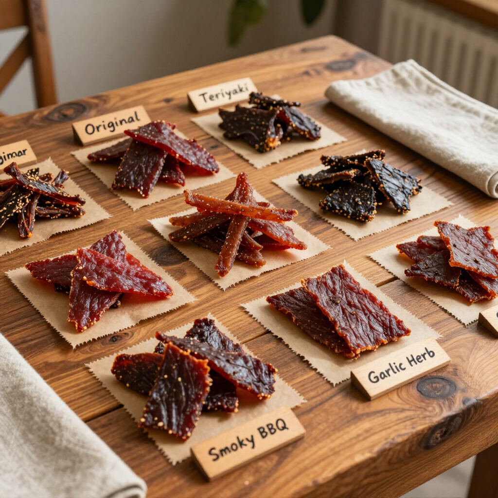 We offer a variety of flavors, including classic original, spicy peppered, teriyaki, and even sweet BBQ. There's a flavor for every palate!